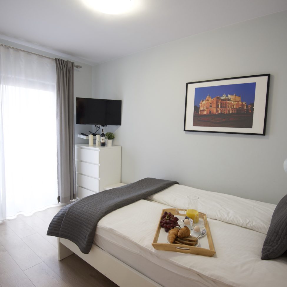 However, a Studio apartment is designed for max. of 2 people. It is equipped with one large bed, a kitchenette, a bathroom with a bathtub.